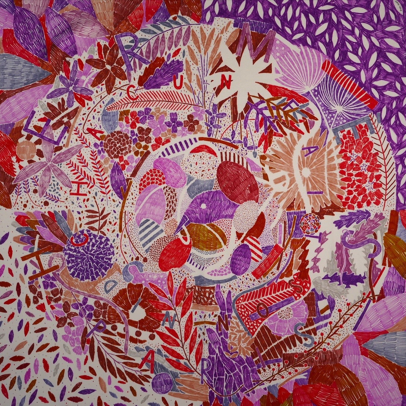 Carré Hermès 90 cm – Chacun fait son nid – Nigel Peake (2016) – Fuchsia