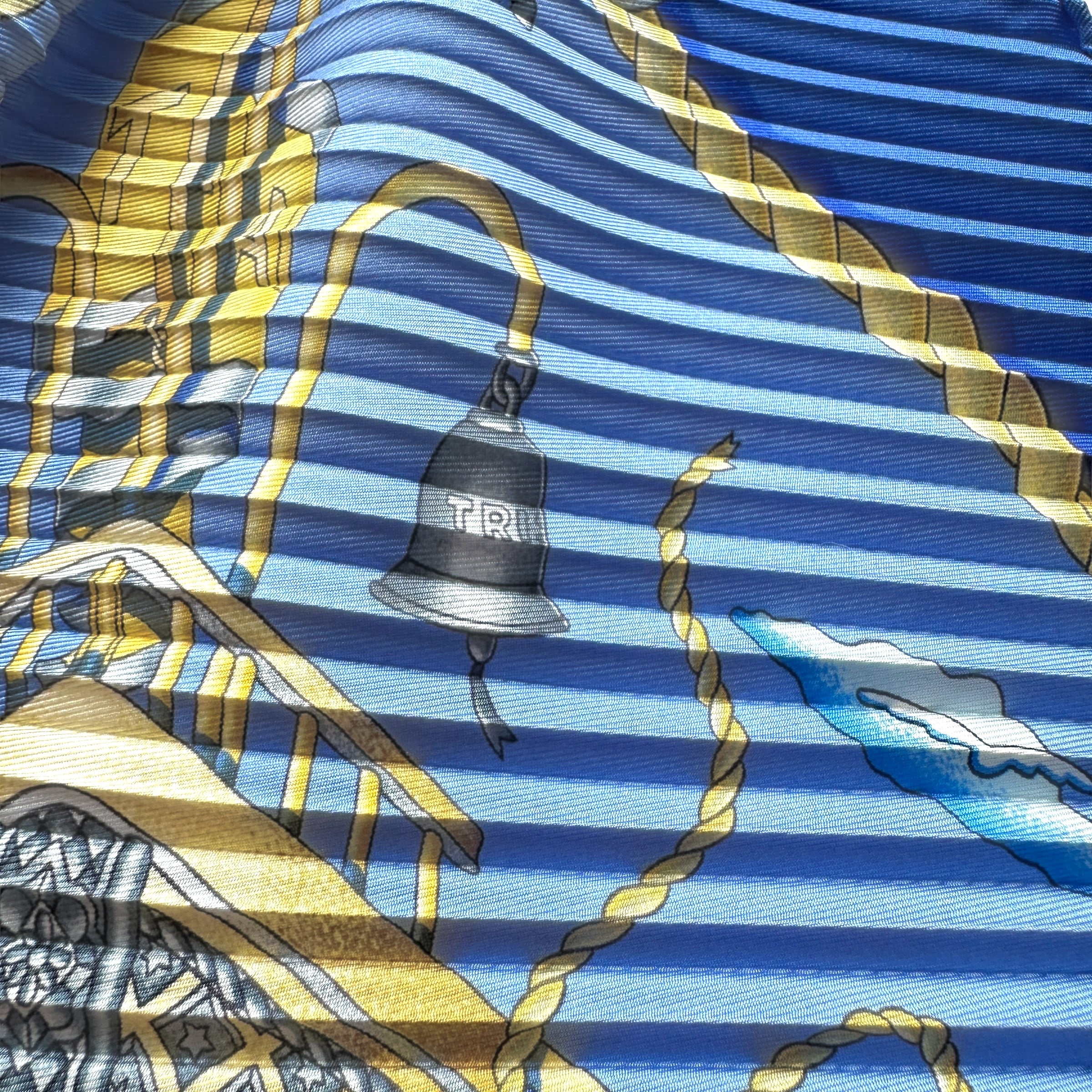 Ce plissage, réalisé sous le contrôle d’Hermès, donne au foulard un mouvement fluide et une structure élégante, très flatteuse en tour de cou ou en bandeau.